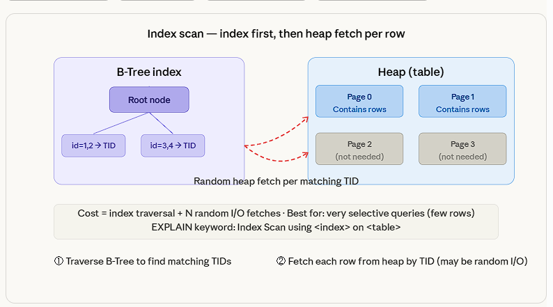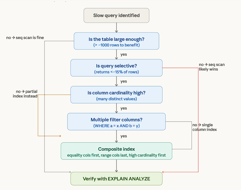 Look for Index Scan or Bitmap Index Scan in the output — if you see Seq Scan, the index isn’t being used.